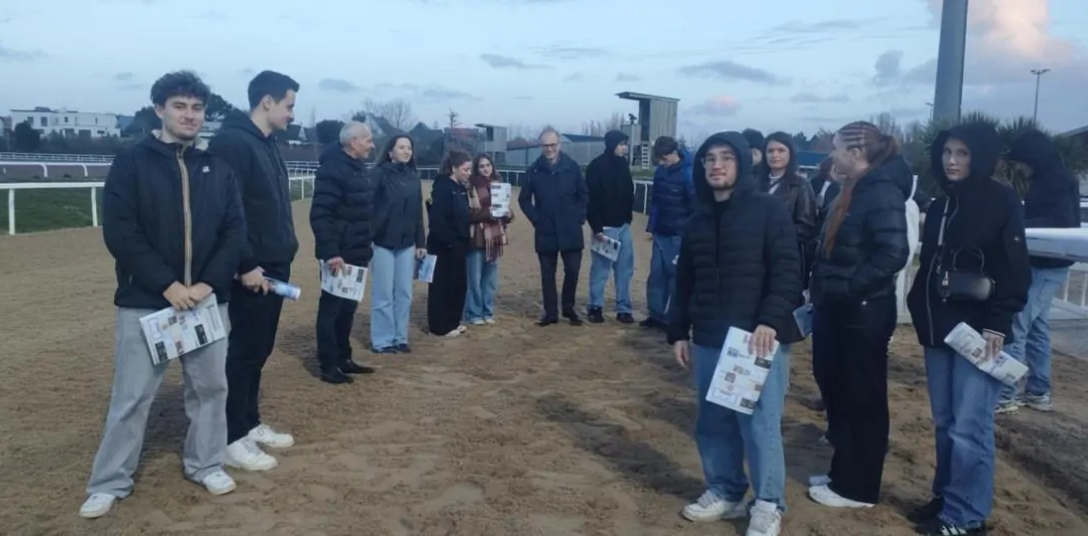 La journée s'est poursuivie par une immersion au coeur de la filière des courses hippiques, dans le cadre du thème étudié en Culture Générale et Expression, "L'Animal" . L'hippodrome de Pornichet a permis aux étudiants de découvrir la structure, le fonctionnement et les particularités d'un hippodrome. Les étudiants ont également pu échanger avec plusieurs jockeys, acteurs incontournables de l' activité des courses. Un seul mot pour résumer tous ces échanges : la passion.