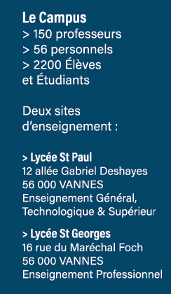 Le campus St Paul St Georges vous propose de nombreuses formations dans l’enseignement général et technologique, professionnel, spécialisé et supérieur.