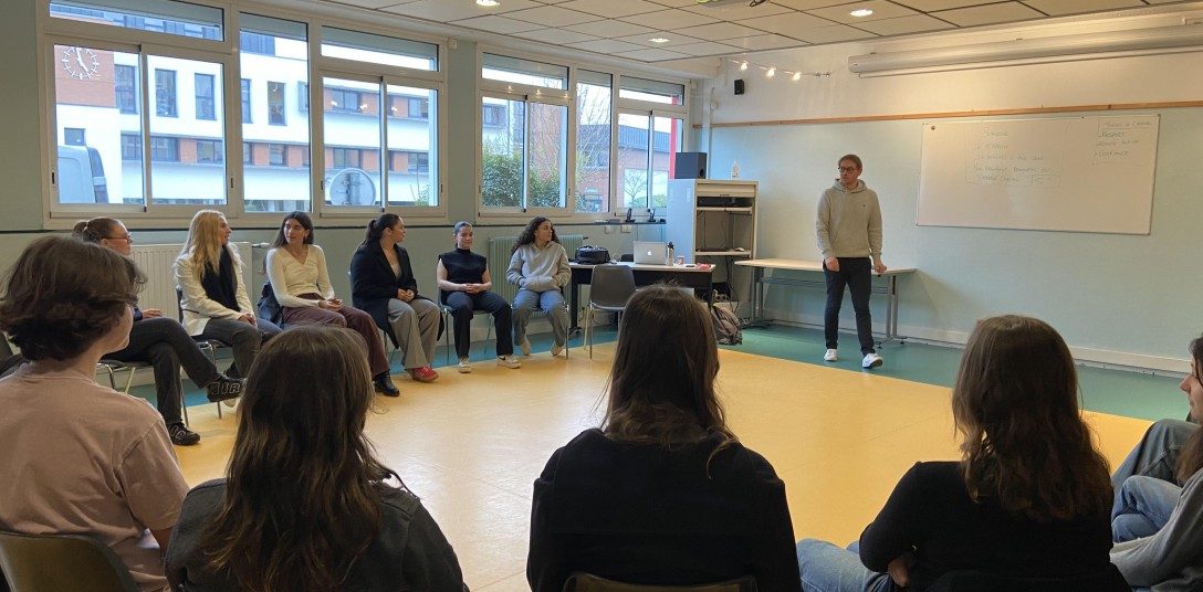 Vendredi dernier les participants au concours d'éloquence ont pu assister à un coaching pour aborder la prise de parole sur scène avec l'ancien animateur Sébastien Loyer. Divisé en deux groupes, les élèves ont pu travailler sur la gestion du stress, la posture ou encore l'utilisation de l'espace et de la voix.