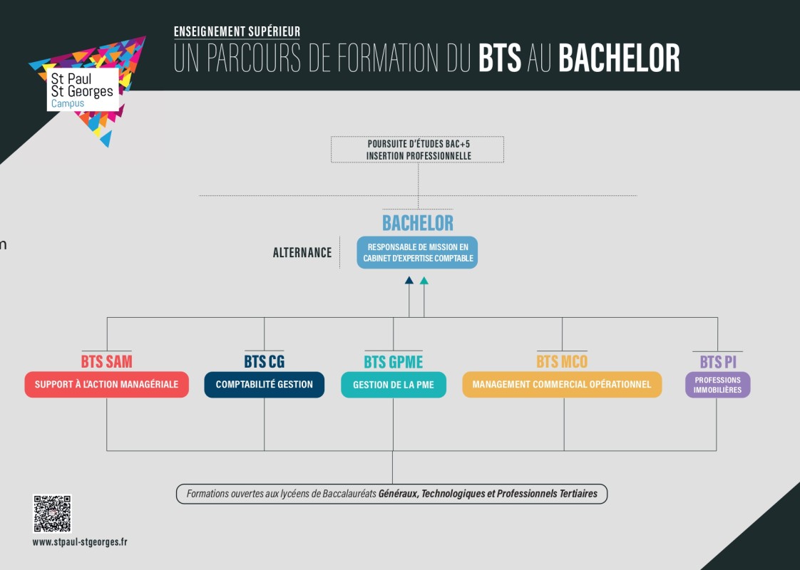 Le Campus St Paul-St Georges accueille près de 300 étudiants/alternants dans 5 BTS tertiaires complétés par 4 formations de niveau Bac+3.