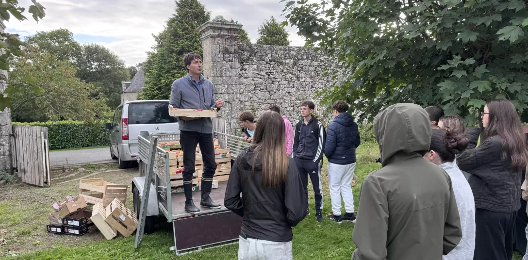 En ce début d'année, nos élèves de 2nde pro de st Georges se sont mit en route vers la congrégation du Vincin à Arradon pour la collecte des pommes en prévision de leur Opération "Jus de pomme".